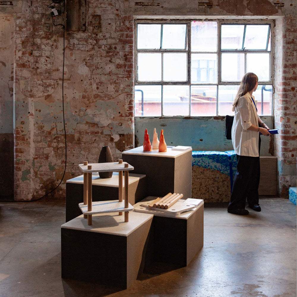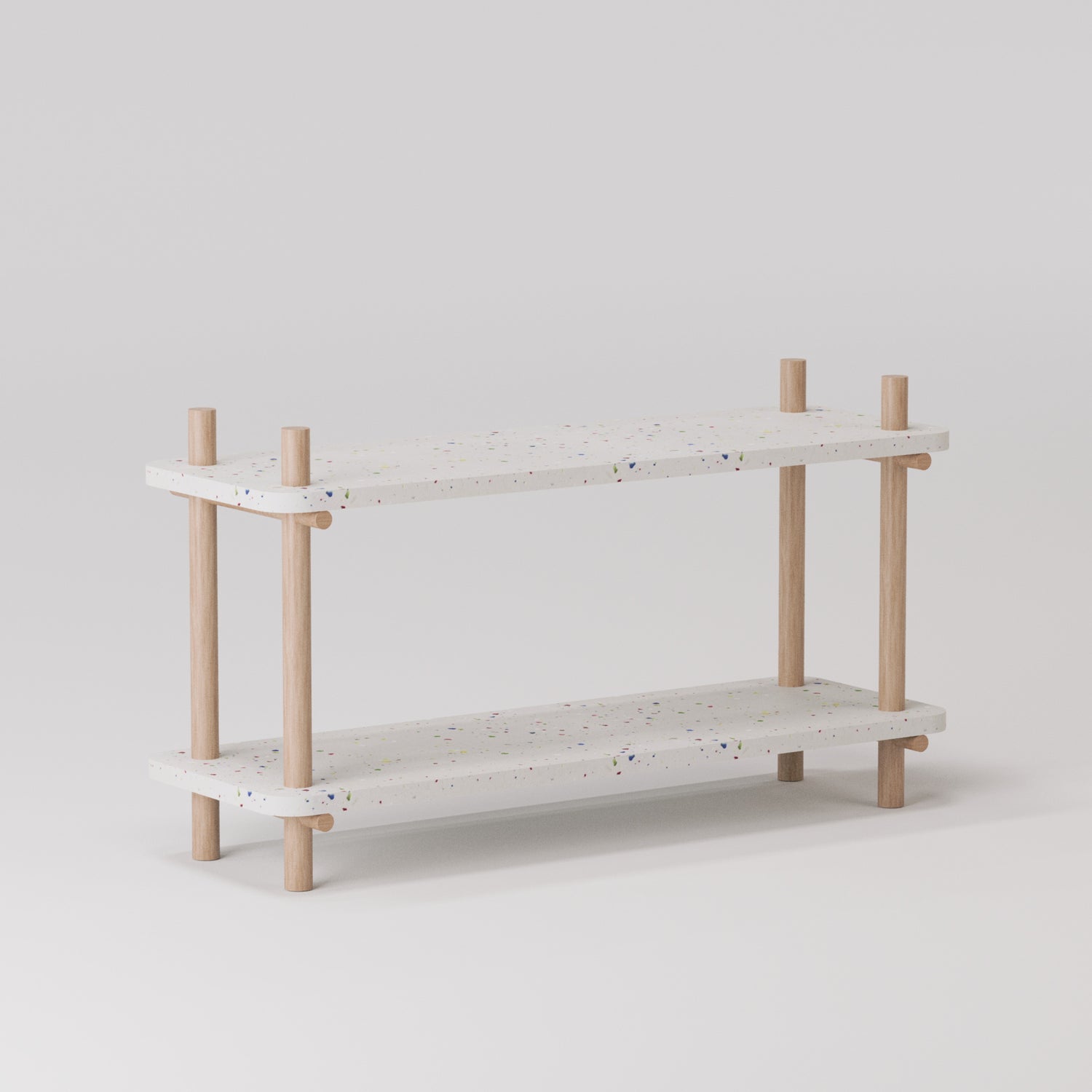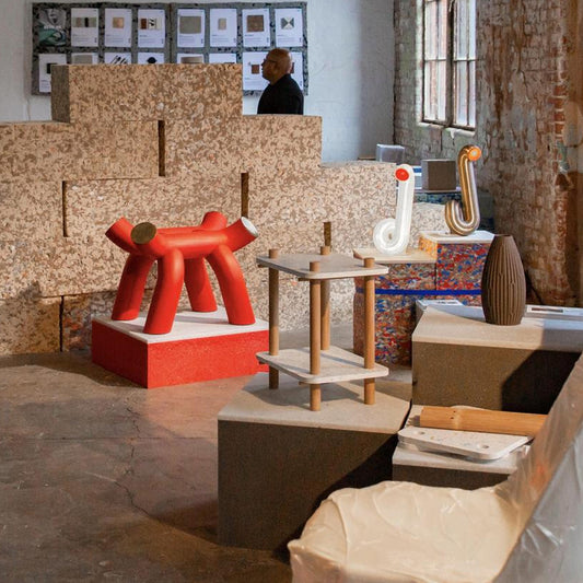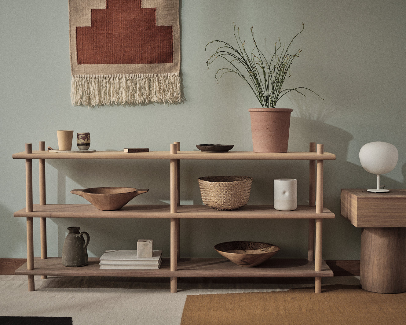Muebles modulares que combinan la madera torneada y el plástico reciclado. Lo que una...