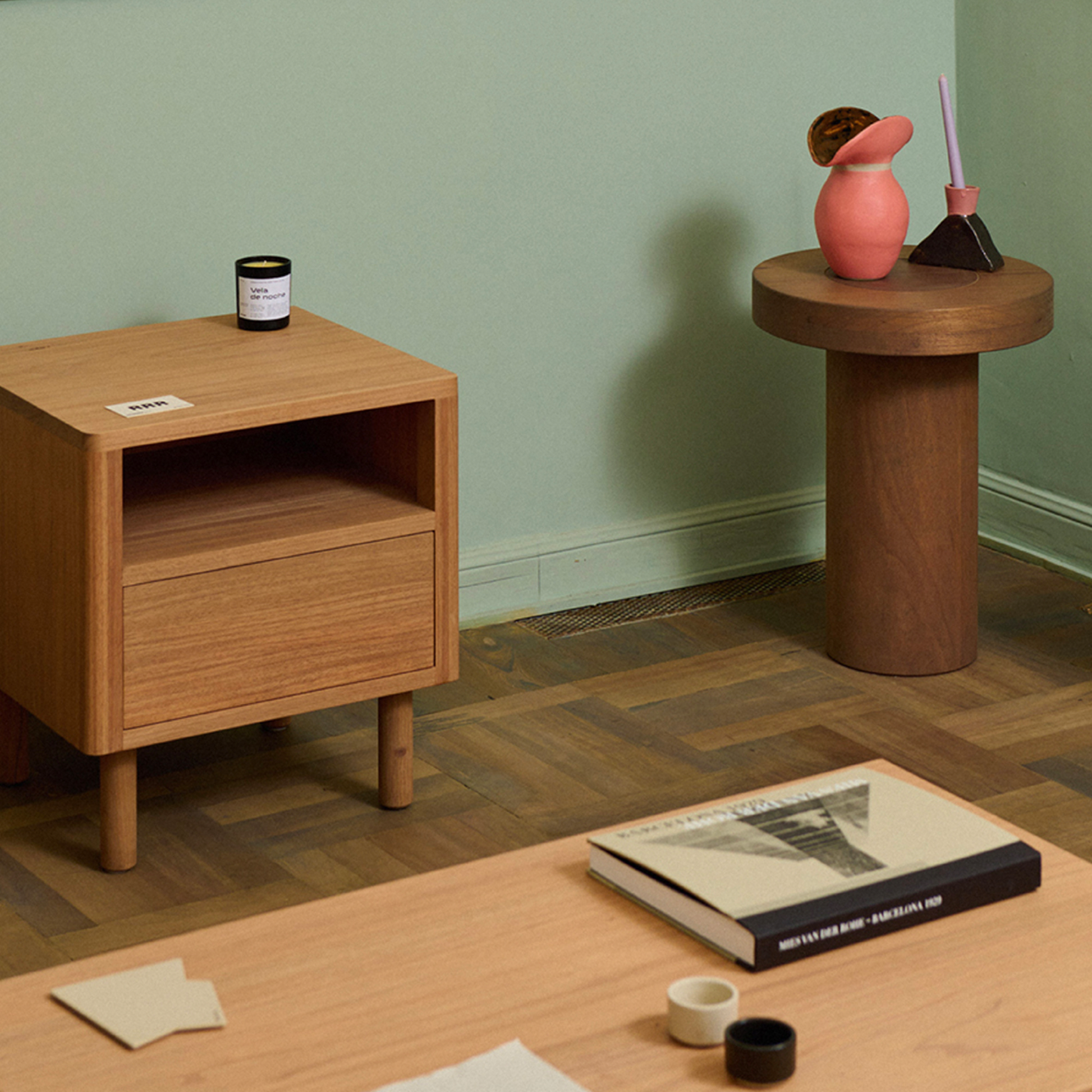 Un velador para guardar tus noches: sostiene libros, lámparas y sueños en silencio.